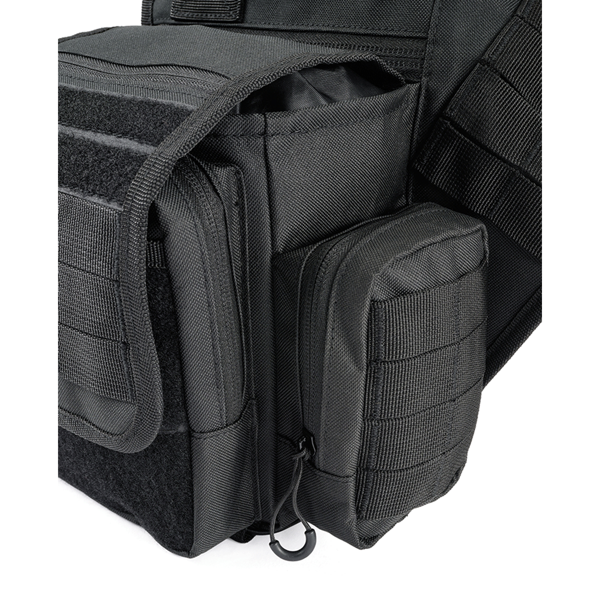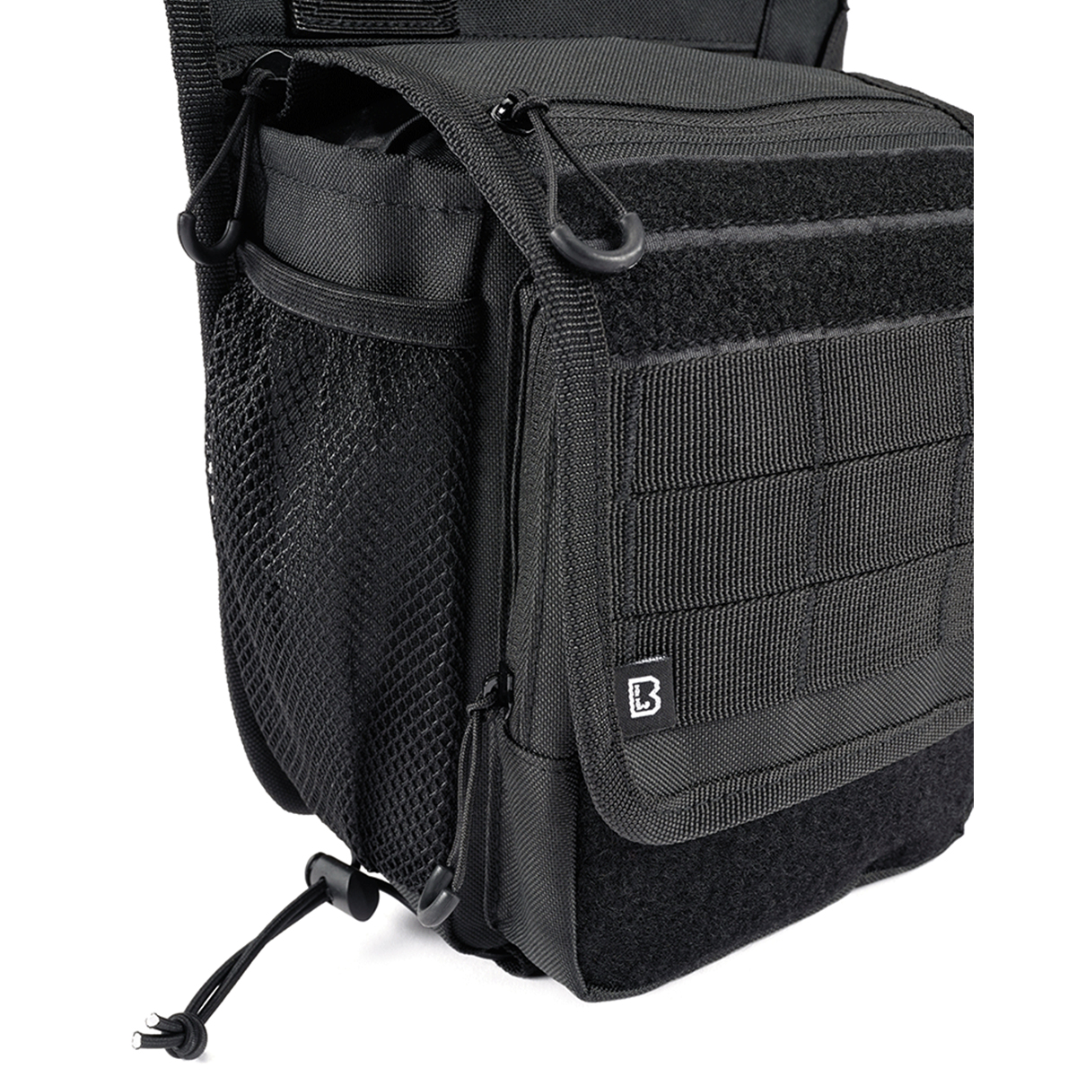 Brandits Travel Side Bag ist als Umhängetasche ein praktischer Begleiter im Alltag oder auf Reisen und noch dazu ein kleines Raumwunder. Alle Dinge, die du täglich mitführen musst finden hier ihren Platz. Zusatzfächer für eine Trinkflasche oder -becher und viele Anbringungs- und Erweiterungsmöglichkeiten ermöglichen dir viel Stauraum. Schräg über einer Schulter – wahlweise vorne, seitlich oder auf dem Rücken getragen – gewährleistet dir diese Tasche Bewegungsfreiheit und freie Hände. Der Schultergurt ist verstellbar, rutschfest und atmungsaktiv gepolstert. Das MOLLE-System befindet sich auf der Klappe, der Rückwand, der Vorderseite einer der Seitentaschen und am Schultergurt, so dass die Tasche mit zusätzlichem Zubehör oder Modulen erweitert werden kann. Weitere Befestigungspunkte sind ein Karabinerhaken am Schultergurt und ein D-Ring auf der Rückseite. Dank der zusätzlichen Taschen und Fächer ist stets Ordnung garantiert. Außerdem ist die Oberfläche der Tasche beschichtet, um sie vor Schmutz und Feuchtigkeit zu schützen.