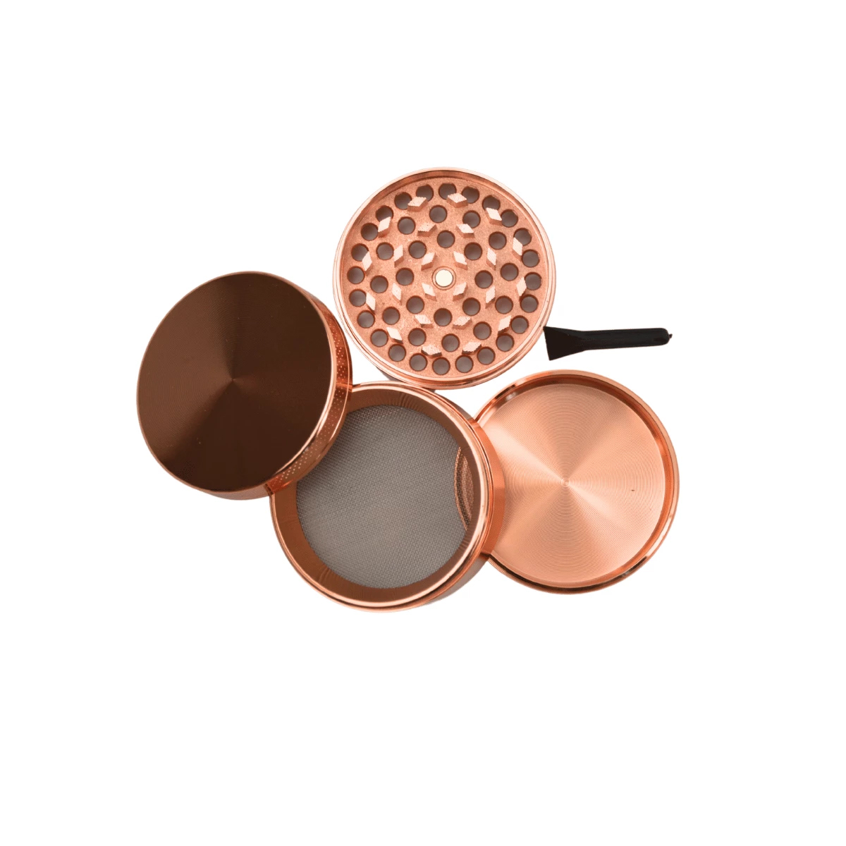 Der Grinder "Roségold " ist ein eleganter 4-teiliger Crusher. Mit seinem kompakten Format von 35 x 51 mm passt dieser Kräutermühlen perfekt in jede Tasche und sieht dabei noch edel aus. Dank seiner hochwertigen Verarbeitung ist er ein zuverlässiges Accessoire für alle, die Wert auf Design und Funktion legen.