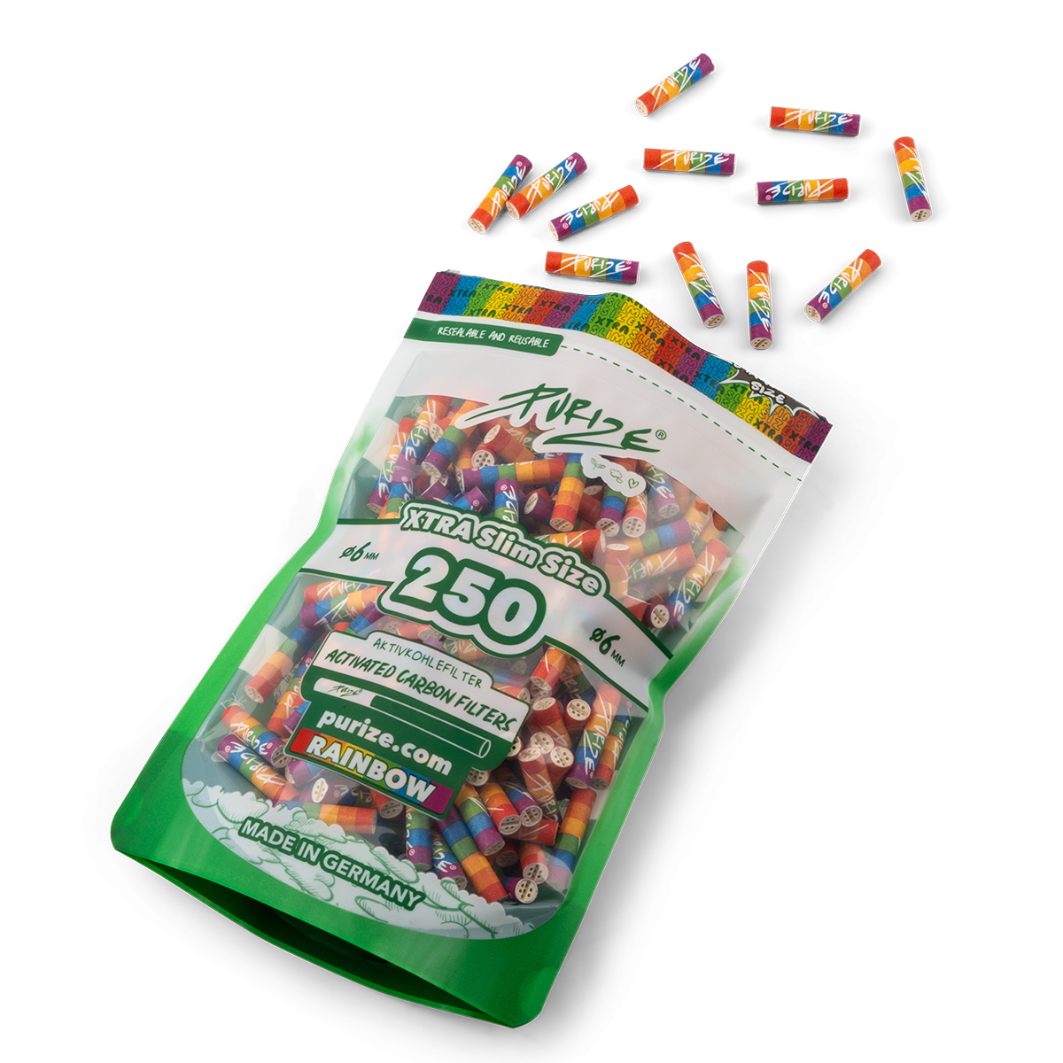 Produktinformationen "Purize Aktivkohlefilter "XTRA Slim Size 250er Pack" Rainbow (5,9mm)"