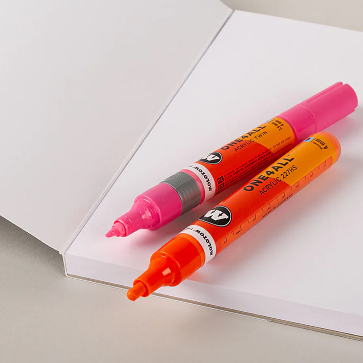 Die ONE4ALL Professional Skizzenblöcke und Skizzenbücher bestehen aus hochwertigem Acrylmalpapier in verschiedenen Formaten. Die ONE4ALL Skizzenbücher und Skizzenblöcke sind auch mit wasserbasierten Tinten kompatibel.