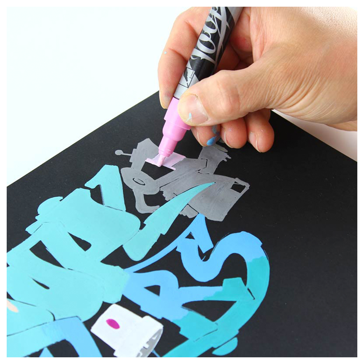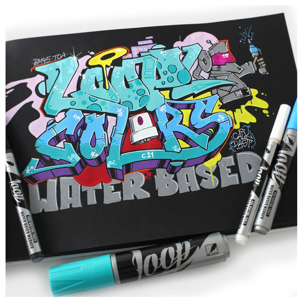 Schwarze behandelte Qualitätsblätter, ideal zum bemalen mit den Loop Water Based Markern und natürlich mit allen anderen Acrylmarker Modellen.