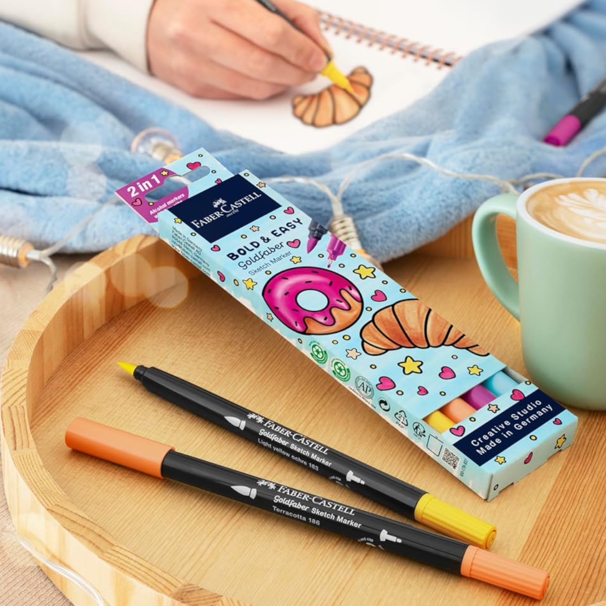 Entdecke mit dem Goldfaber Sketch Markern von Faber-Castell die farbstarke Welt des „Bold and Easy“-Designs. Dieses 4er Set wurde speziell für kreatives Ausmalen großer, klarer Motive konzipiert und eignet sich hervorragend für Einsteiger und Fortgeschrittene, die gerne gestalten, kolorieren oder Sketchnotes visualisieren.