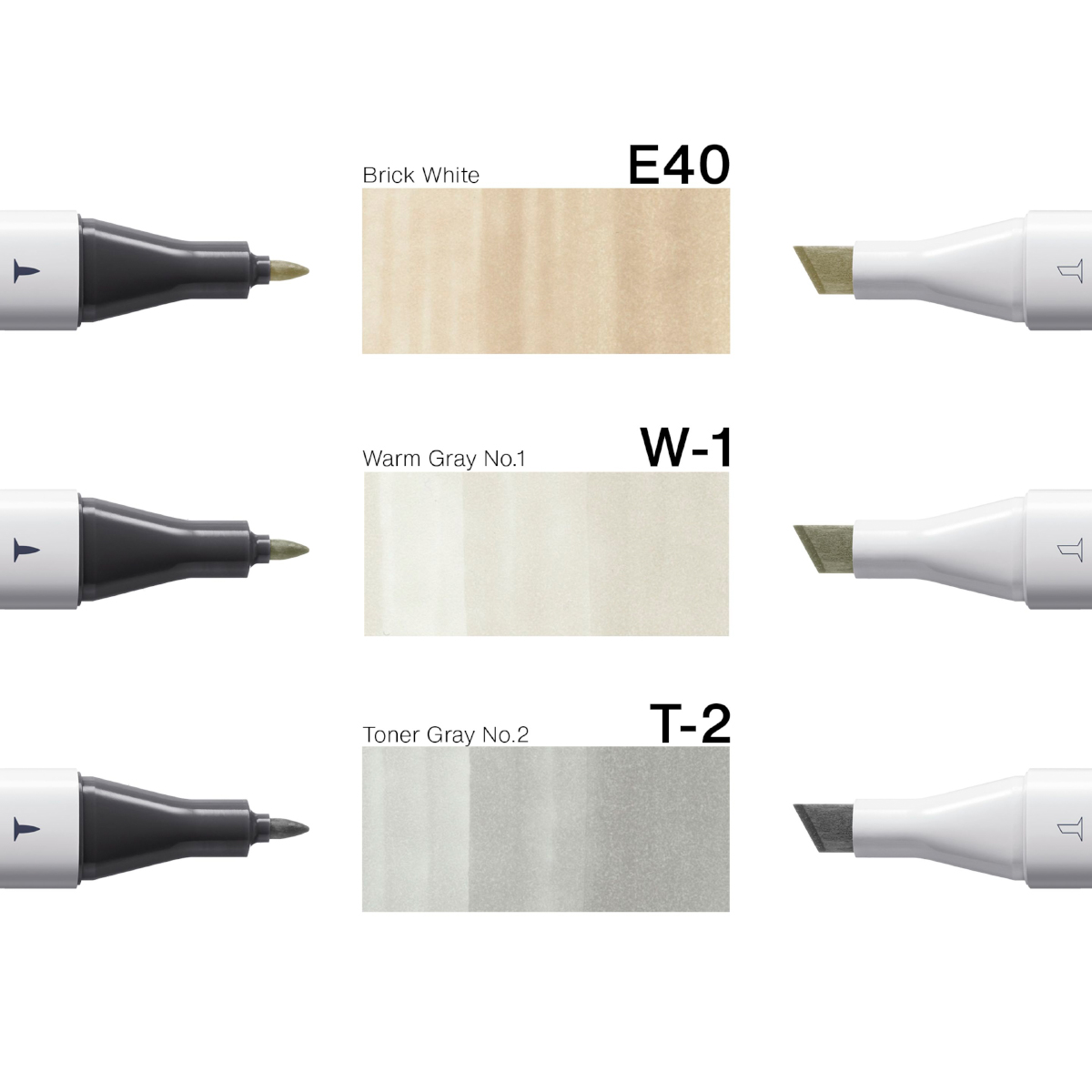 Enthaltene Farben im Set: E40 (Brick White), W1 (Warm Gray No.1), T2 (Toner Gray No.2)