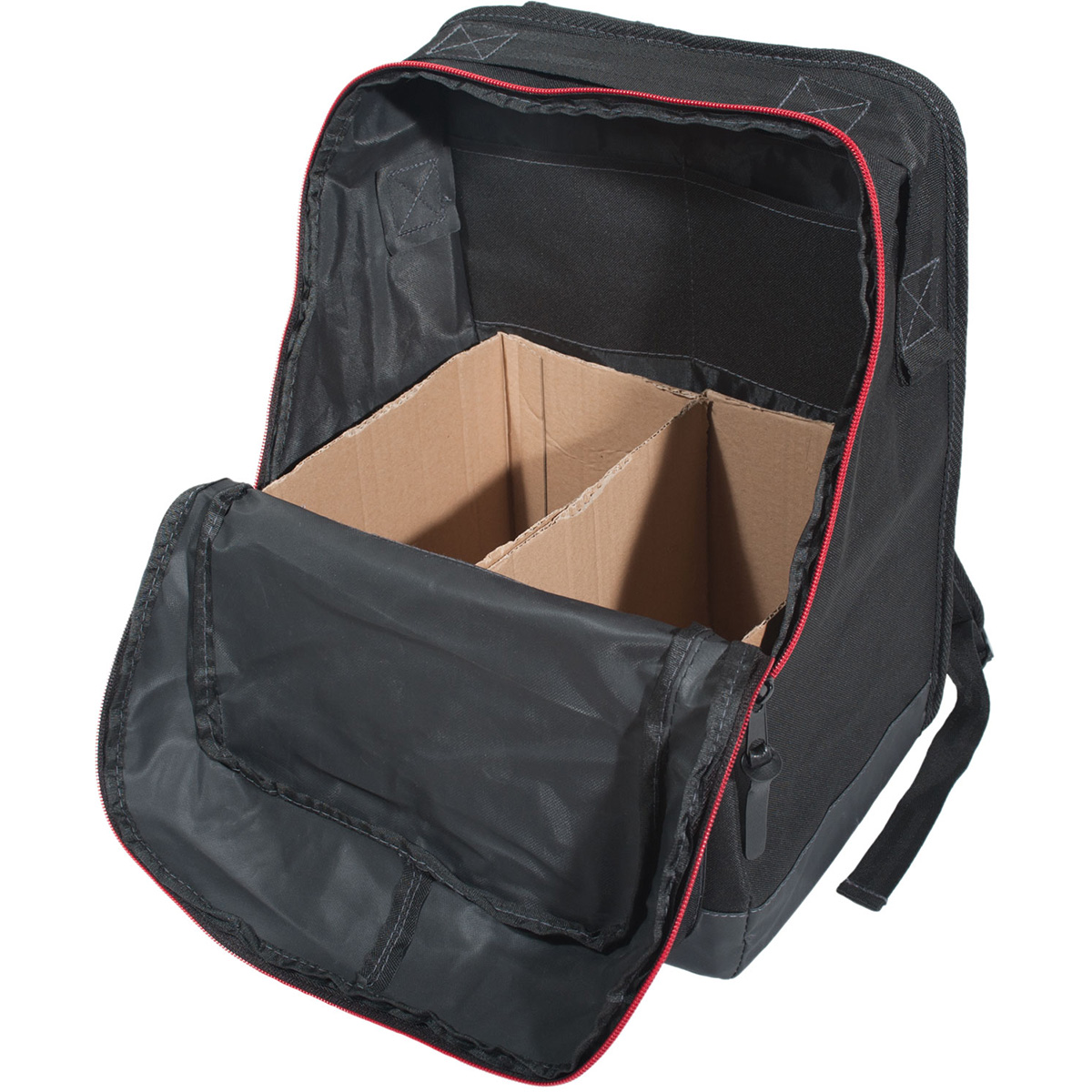Ideal um eine größere Menge an Dosen von A nach B zu transportieren. Seitlich des Rucksacks befinden sich Handgriffe und Schlaufen an denen sich andere Taschen/Beutel befestigen lassen.
