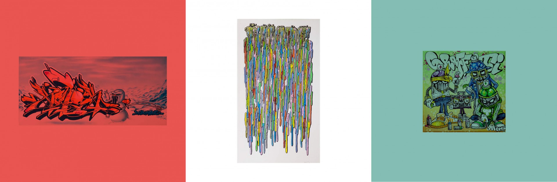 Leinwandstoff mit Keilrahmen - Original der Künstler: Fino, Shade & EpikDose und Marker KombinationMaße: "60x80cm" - Titel: "Fino, Shade & Epik"Die Leinwand ist ein Unikat/Original der Künstler "Fino, Epik & Shade"