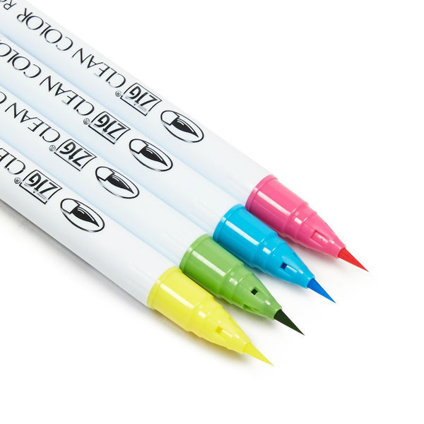 Dieses Zig Clean Color Real Brush Set enthält 4 Brushmarker der Firma Zig, die optimal für Illustrationen, Cartoons und Mangazeichnungen geeignet sind. Die Pinselspitze des Markers ermöglicht einen feinen, sowie einen breiten Strich beim Malen mit der Breitseite und ist somit optimal für das kalligrafische Schreiben geeignet. Die Stifte enthalten wasserbasierte Dye Ink Tinte, die mit anderen Farben der Zig Brush Marker Reihe gemischt werden kann und gut für Arbeiten im Auqarellbereich ist. Der perfekte Stift für die Verwendung im kalligrafischen, illustrativen sowie künstlerischen Bereich.