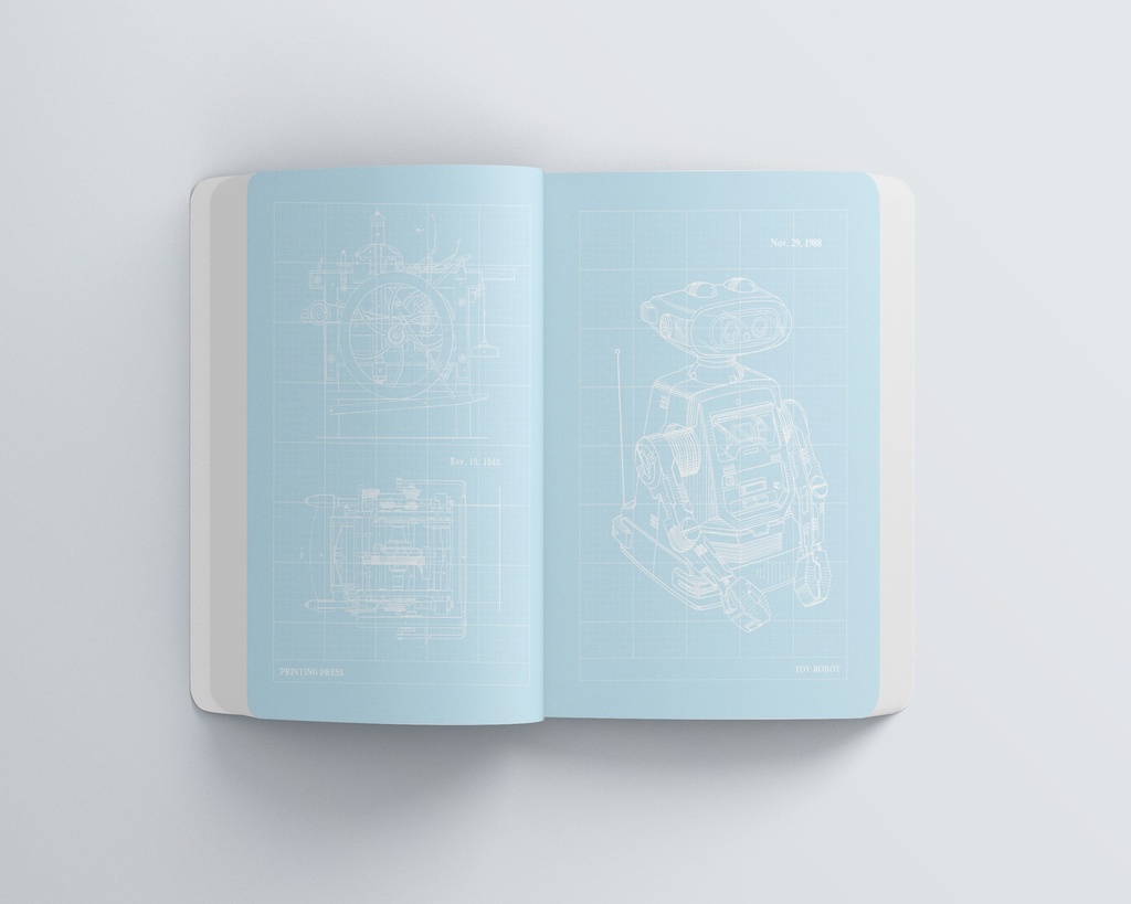 Blueprint Notebook "Technical Innovations" bietet Ihnen die Möglichkeit, sich von einigen der genialsten technischen Erfindungen der Geschichte inspirieren zu lassen, während Sie Ihre eigenen Ideen für das nächste große Ding skizzieren.