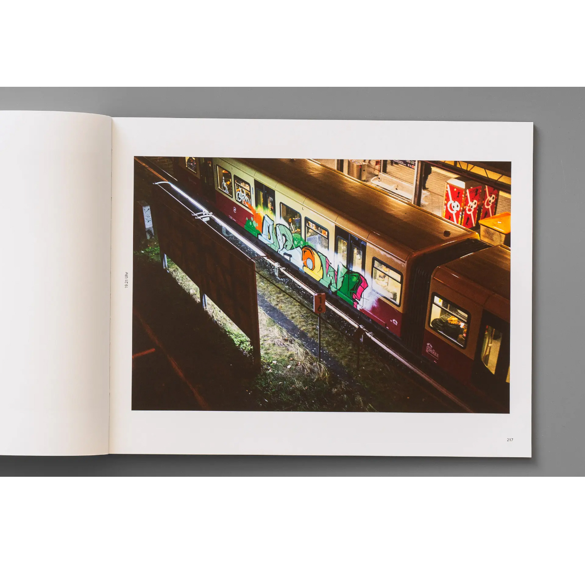 Auf 228 Seiten finden Sie aktuelle herausragende Werke von PEPS, KRIPOEs Comeback zu Zügen seit der Covid-Zeit und zeitlose Burner von BUZZ, MAD79 oder dem allgegenwärtigen ROGER. In Zeiten täglicher Trainspotting-Überdosen in den sozialen Medien bietet das Buch eine erfrischende Alternative, um ausgewählte Werke zu Zügen zu genießen, die in großem Format gedruckt und in einem klaren, minimalistischen Layout zusammengestellt sind. Auch hier richtet sich die Reihenfolge der Fotos nach der Tageszeit, zu der sie aufgenommen wurden.