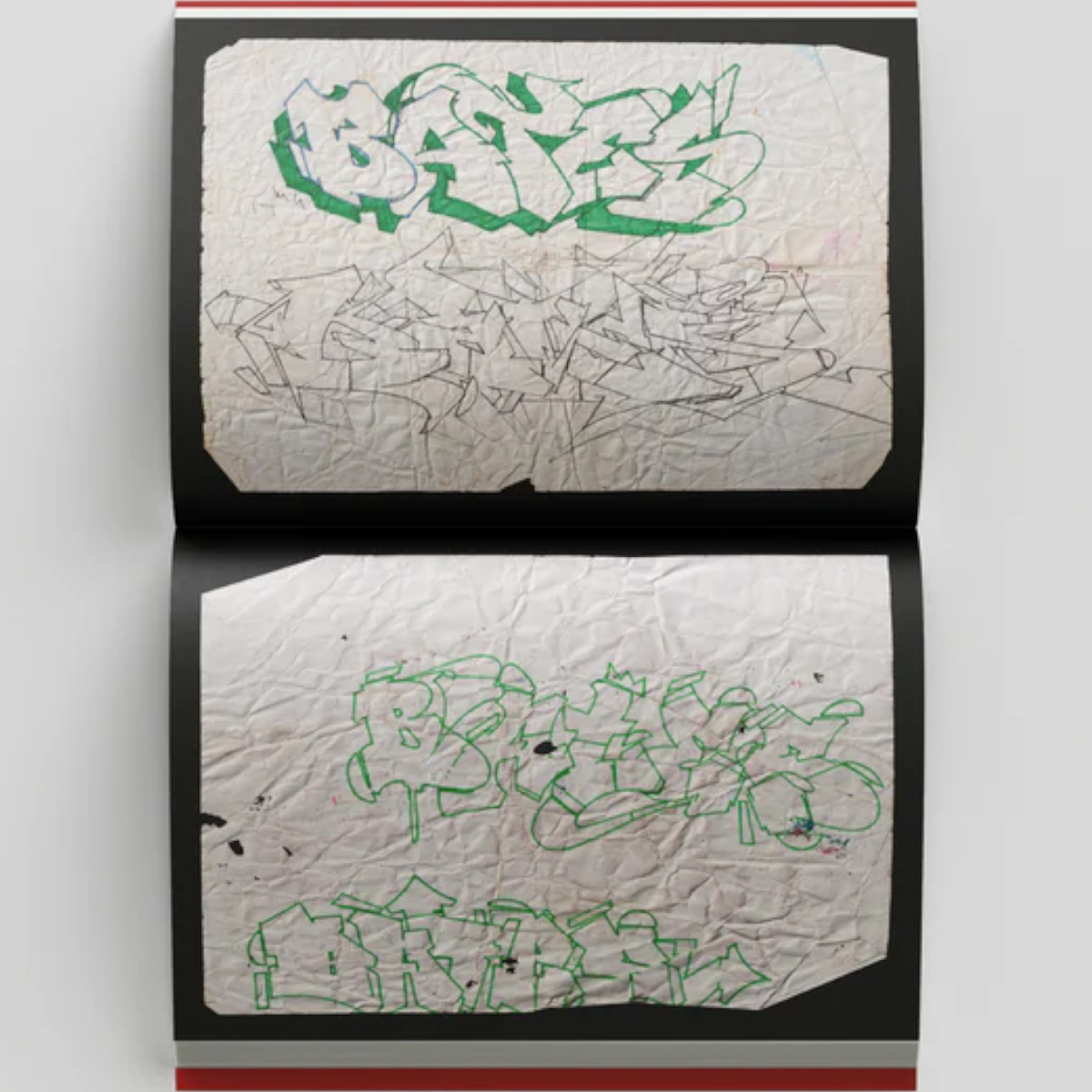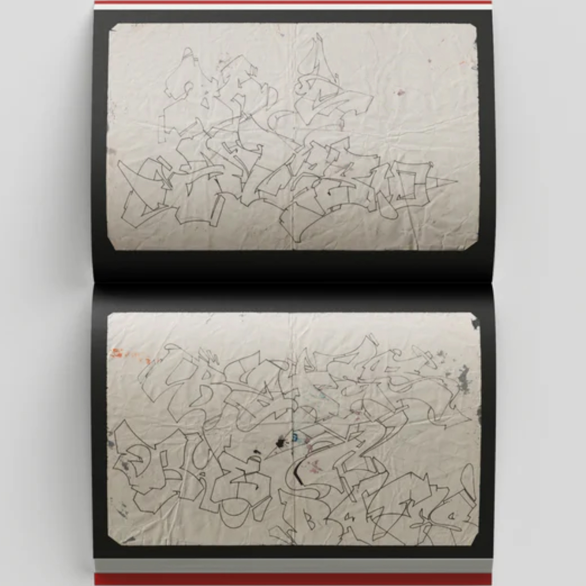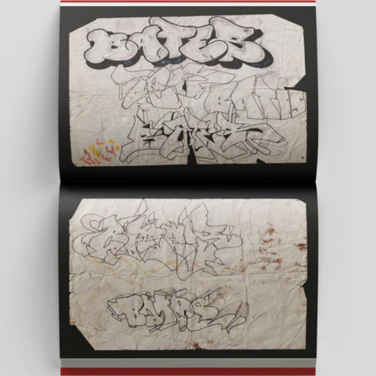 Aber dieses Buch ist anders: Es dreht sich ausschließlich um seine eigenen Skizzen. BATES hat sie alle aufgehoben – roh, authentisch und voller Energie. Tausende. Du wirst sie genau so vorfinden, wie sie sind: mit Farbe markiert, von Sprühstaub bedeckt, mit schnellen Notizen versehen, durch das Tragen in Taschen gefaltet oder durch Nächte im Freien gezeichnet. Jede Skizze bietet einen unmittelbaren Einblick in seinen Prozess und seine unermüdliche Hingabe zum Style.