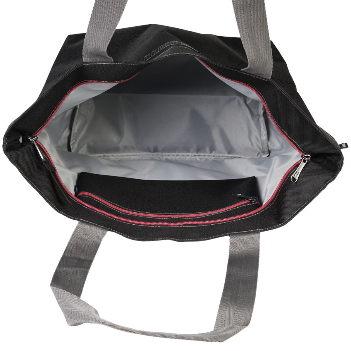 Hauptfach kann mit Reißverschluss geschlossen werden