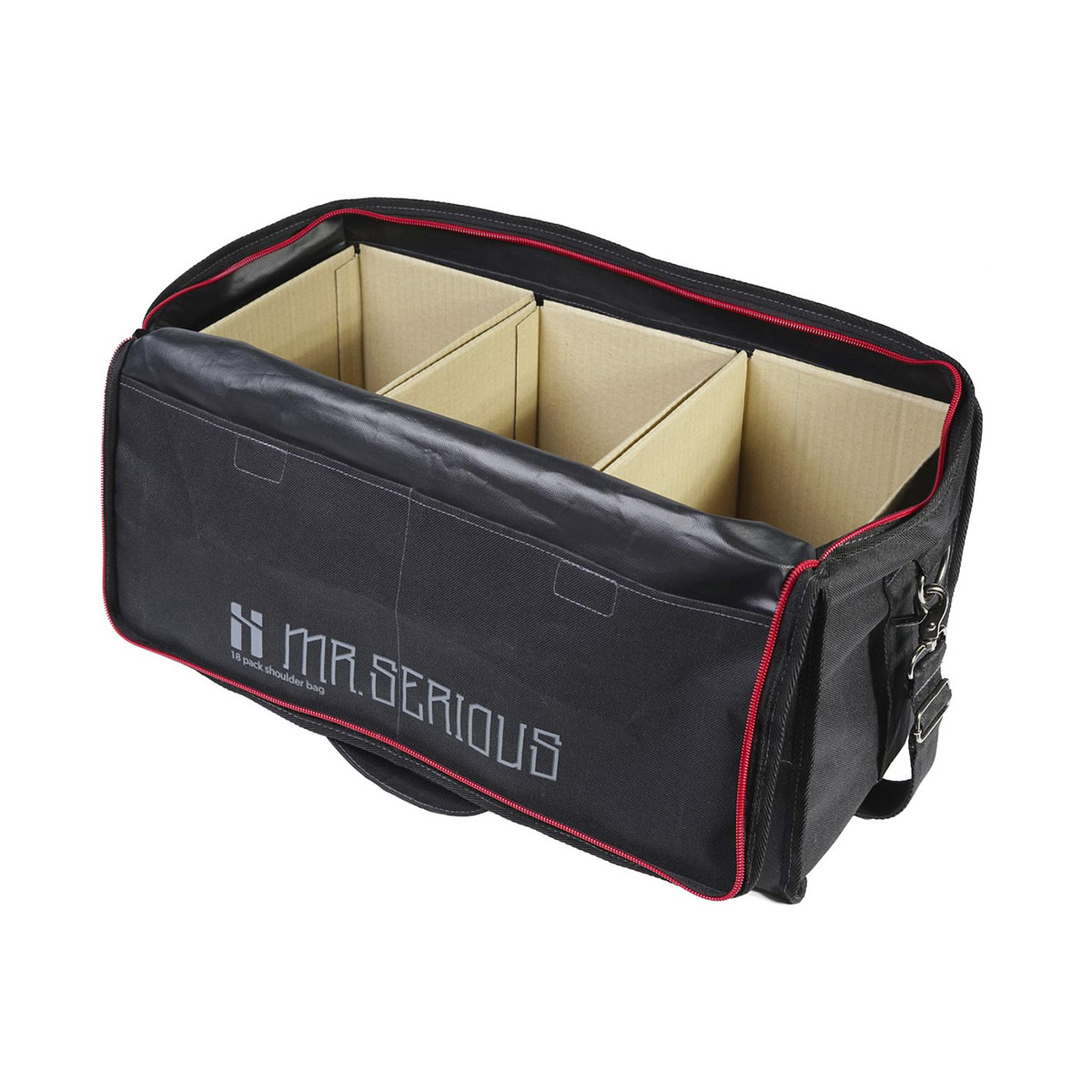 Das Mr. Serious 18er Premium Shoulder Canbag ist die hochwertige Spraydosen Tasche für Fortgeschrittene: drei Sixpacks (= 18 Cans!) passen in diese zusammenfaltbare Tragetasche mit Schultergurt.
